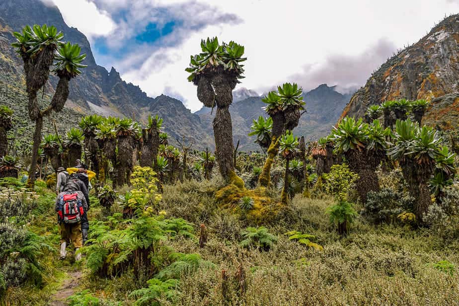 Stel je een breed, open dal voor met een langzaam stromende rivier, omringd door mist, torenhoge bergwanden en de vreemdste vegetatie die je ooit hebt gezien. Dit is de Bujuku Valley, bekend om zijn afro-alpine zone op zijn mooist. Dit is een uniek ecosysteem dat alleen op grote hoogte in Oost- en Centraal-Afrika voorkomt.