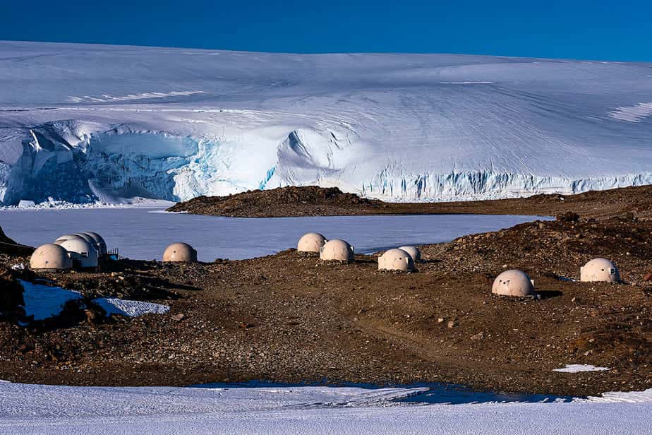 White Desert Hotel is het enige hotel op Antarctica. Slapen doe je in bolvormige cabines van glasvezel. En je ontmoet je veel dieren. Waaronder de grootste pinguïn; de keizerspinguïn.