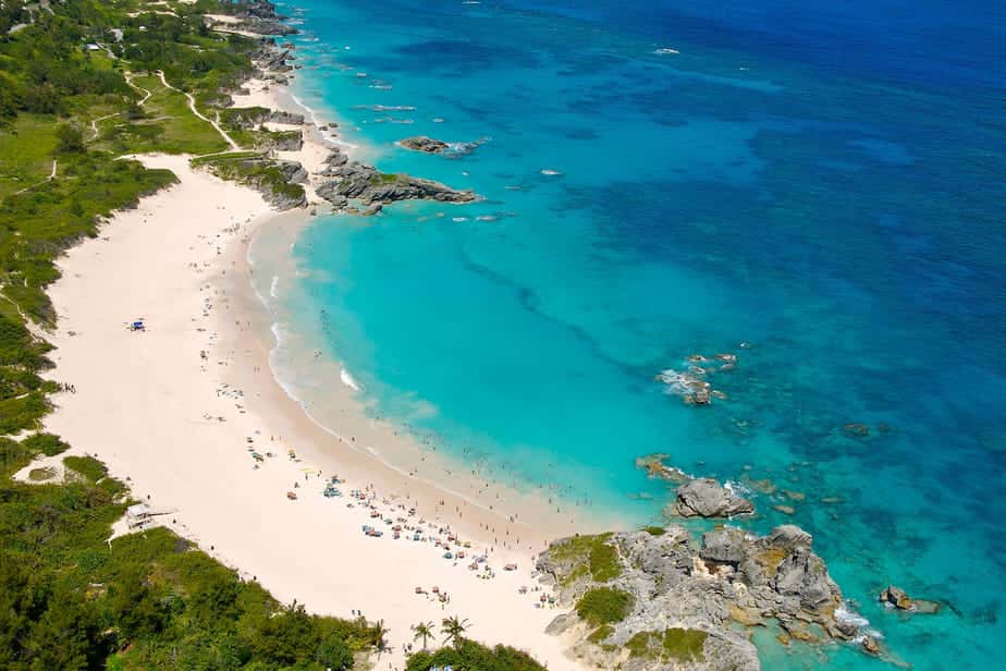 De naam zegt het al. Horseshoe Bay op Bermuda heeft de vorm van een hoefijzer. Waardoor het beschut ligt en je overal om je heen struiken ziet.