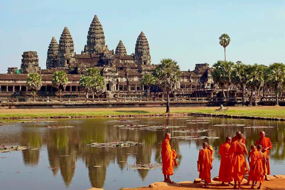 De tempel Angkor Wat is de absolute trekpleister van Angkor. Deze hindoeïstische tempel, gewijd aan oppergod Vishnoe, omvat meer dan 1 km2 en wordt in zijn eentje beschouwd als het grootste religieuze bouwwerk ter wereld. Als het belangrijkste symbool van Cambodja staat de tempel afgebeeld op de nationale vlag.