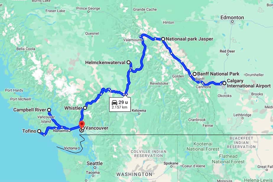 Wil je meer informatie over de Road Trip door West-Canada? Je kunt de gehele route van deze trip zien (en aanpassen) in Google Maps
