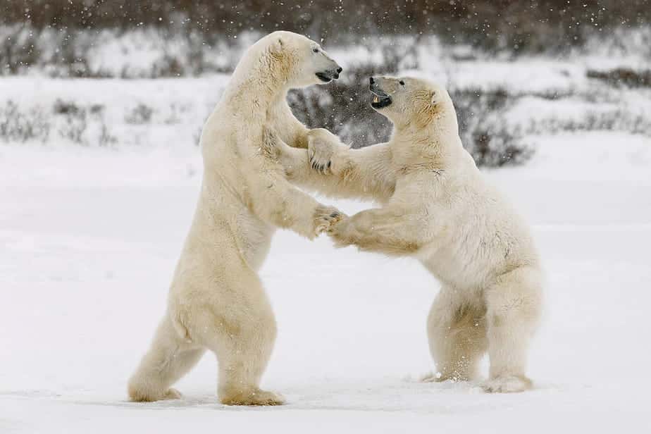 Tijdens de migratie (oktober en november) worden er in de nabije omgeving van Churchill soms wel honderden dieren bij elkaar gezien. Die opvallend tolerant naar elkaar zijn, iets wat de rest van het jaar absoluut niet het geval is. Alsof ze weten dat ze allemaal afhankelijk zijn van de winter en de langzaam dichtvriezende baai …