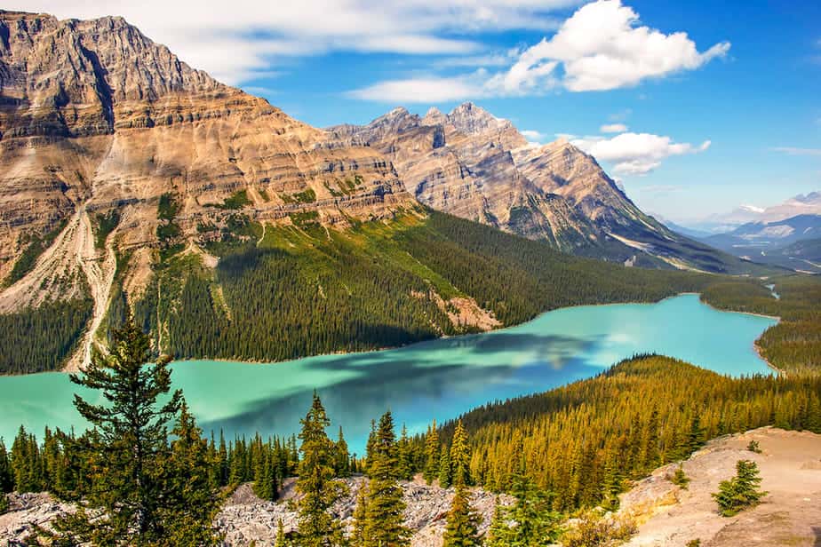 Als je de Icefields Parkway afrijdt naar het noorden kom je Peyto Lake tegen aan je linkerkant. Je kunt je huurauto of camper eenvoudig op de parkeerplaats parkeren. Vanaf de parkeerplaats kun je eenvoudig naar een uitkijkpunt lopen. Dit is iets wat je in Amerika en Canada veel ziet, zodat ook mindervaliden dit soort plekken eenvoudig kunnen bezoeken. Vanaf het hoog gelegen uitkijkpunt kun je goed over het gehele meer kijken. De wandeling is een beetje bergopwaarts, maar goed te doen. Wel is het handig om wat te drinken en eten mee te nemen voor onderweg. Peyto Lake is perfect voor een korte break.
