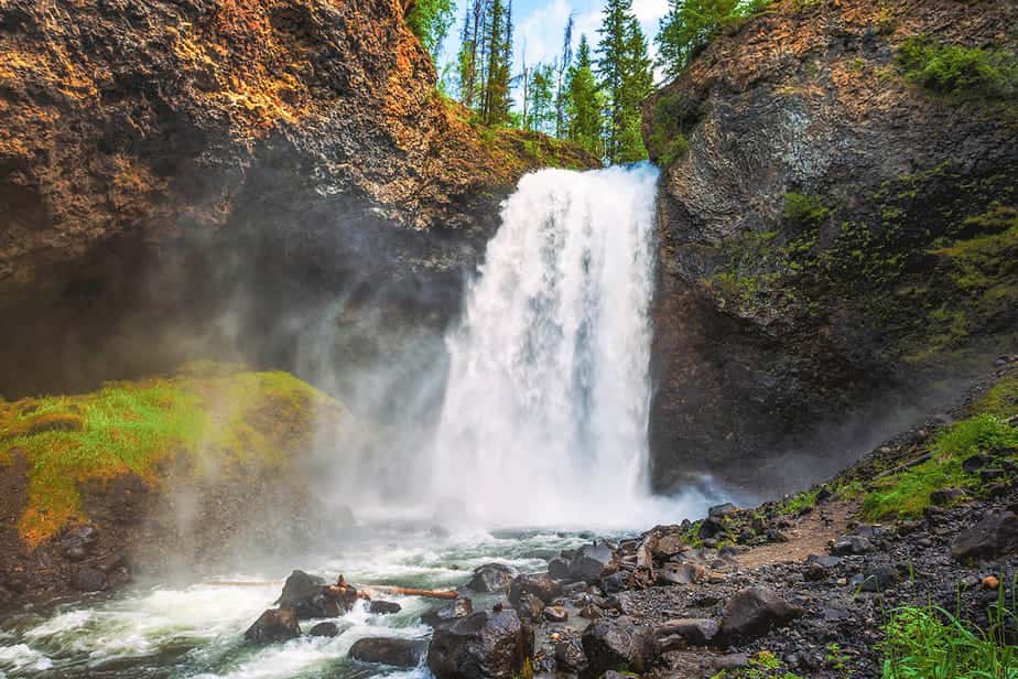 is wereldberoemd geworden door video’s op Facebook en Instagram. En, terecht, veel bezoekers vinden Helmcken Falls de mooiste van alle watervallen in Wells Gray. En in Canada zelfs. De waterval is 141 meter hoog; de vierde waterval van Canada in grootte. Maar Helmcken Falls heeft een hele bijzondere ligging. Als je aan komt lopen zie je goed hoe het water over de rotsrand de diepte in stort. Deze waterval ligt vijf kilometer verderop dan Dawson Falls. Hij is eenvoudig te bereiken via een zijweg van de Clearwater Valley Road.