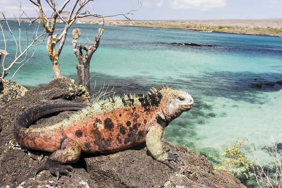 De zeeleguaan is een van de meest bijzondere dieren op de Galapagoseilanden. Het is de enige leguanensoort die zowel op land als in de zee leeft. Deze prehistorisch uitziende dieren kunnen 1,5 meter lang worden.
