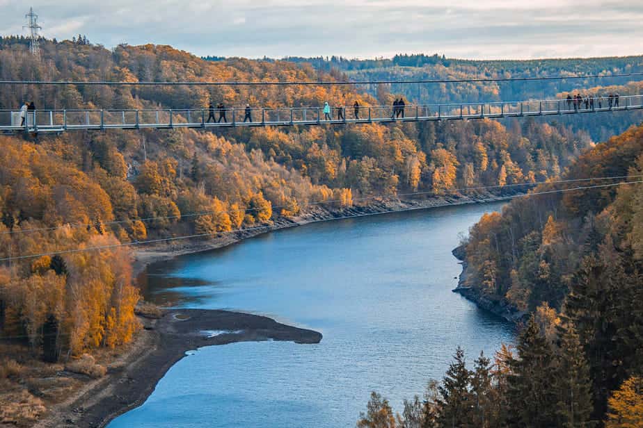 Deze hangbrug in het Harzgebergte is 483 meter lang