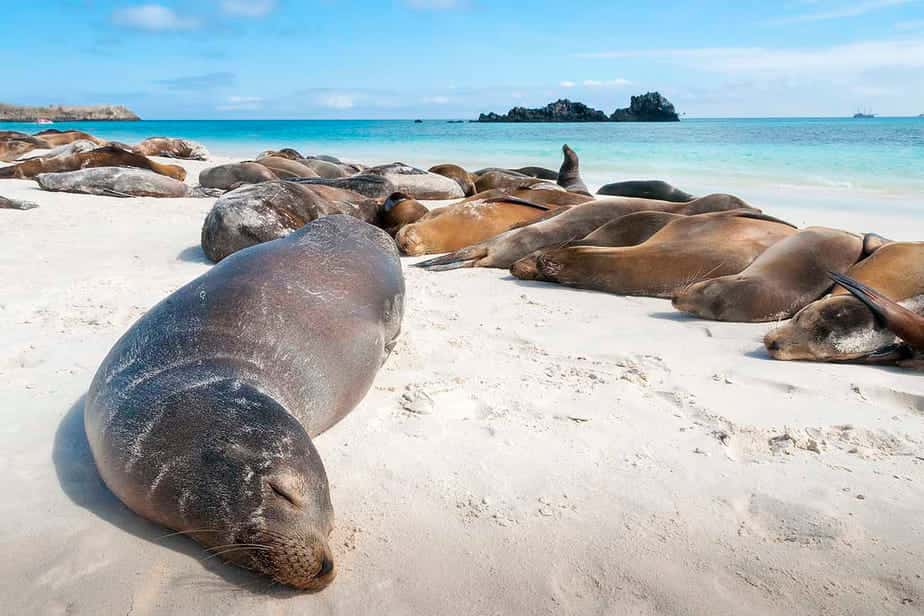 Galápagoszeeleeuwen kunnen zo’n 2,5 meter lang worden. Deze immense dieren zijn meestal donkerbruin van kleur. Volwassen mannetjes zijn eenvoudig te herkennen, ze hebben een hoog opgetrokken voorhoofd. Tijdens de paartijd zijn deze mannetjes erg territoriaal. De Galápagoszeeleeuw wordt hier op veel plekken gezien. Zoals South Plazza, Santa Fe, Rabida, Santiago Island, San Cristobel en Isabela.