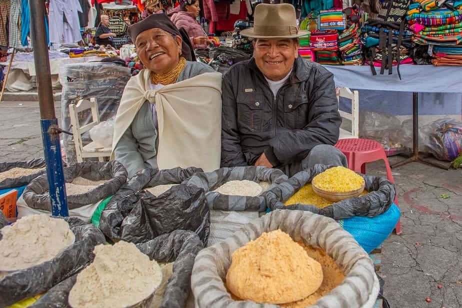 En dat alles in een decor waar je u tegen zegt. De vulkanen Imbabura (4.630 meter), Cotacachi (4.939 m) en Mojanda (4.263 m) zie je aan alle kanten boven het marktstadje uit steken. Je hoort her en der muziek, terwijl iedereen zijn boodschappen doet of juist iets wil verkopen. Veel authentieker wordt het niet. Ook al lopen er nu toeristen, de sfeer is goed merkte ik toen ik er was.