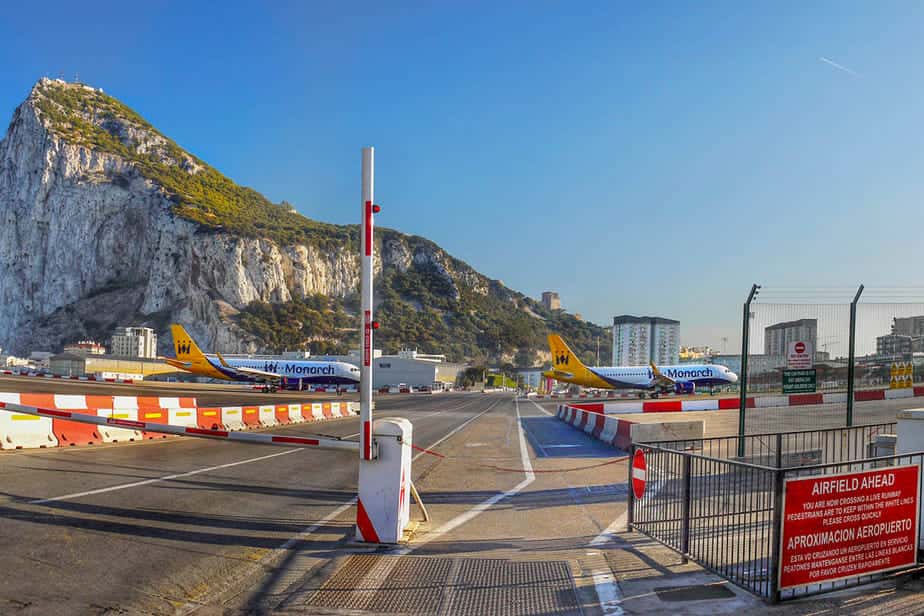 De luchthaven van Gibraltar is anders. Hier kruisen de startbaan en de toegangsweg elkaar. Als er een vliegtuig opstijgt of landt, moet deze kruising met slagbomen worden afgesloten. Wat wonderlijke beelden oplevert.