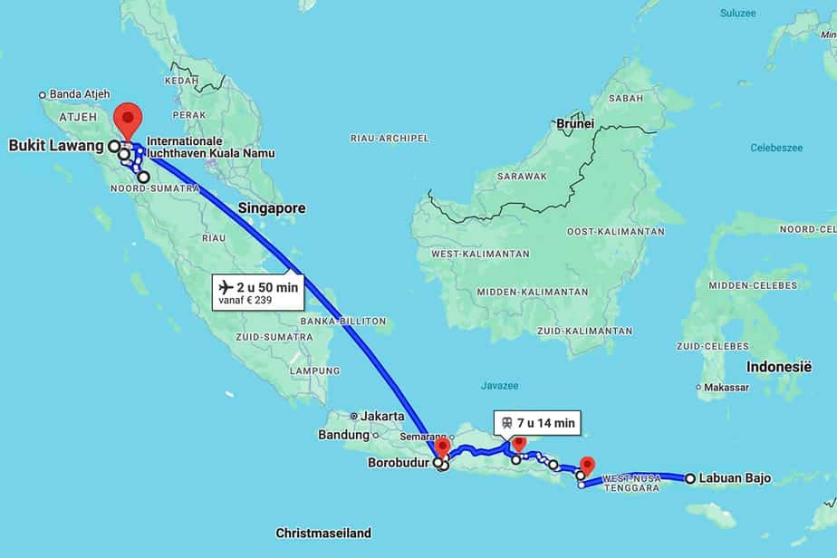 Als vertrekpunt is de hoofdstad Medan op Sumatra aangehouden. De vlucht naar huis vertrekt van Bali. Deze Road Trip is goed te doen in 28 dagen, zonder dat je te lang in een auto, boot of vliegtuig zit. Je rijdt met een auto en lokale gidsen over de diverse eilanden. Op sommige locaties heb ik iets meer tijd genomen, zodat je ook goed kunt relaxen op deze reis. Het is logisch dat je meer uitstapjes kunt doen dan ik heb vermeld in dit artikel. De leukste trips noem ik ook in dit artikel.