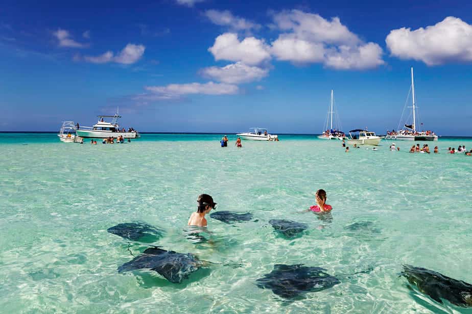 Vanaf Grand Cayman worden excursies aangeboden om tussen de roggen te zwemmen en om ze te aaien. Je wordt er met een bootje heen gebracht. Onderweg krijg je snorkelspullen, zoals een snorkelmasker. Bij aankomst krijg je enkele instructies en mag je het warme water in.