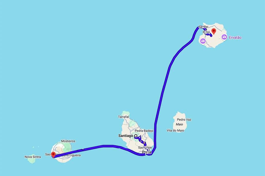 Je vliegt vanuit Nederland naar Santiago, het grootste eiland van Kaapverdië en het logische start- en eindpunt van je reis. Tijdens deze rondreis bezoek je drie totaal verschillende eilanden: Santiago, Fogo en Boa Vista, waarbij je je verplaatst met binnenlandse vluchten, de snelste en meest praktische manier om te reizen. Santiago is bewust opgesplitst in het begin en het einde van de reis, zodat je niet afhankelijk bent van een binnenlandse vlucht op de dag van je terugvlucht. In 10 dagen is deze route goed te doen, met genoeg tijd om te wandelen, natuur te beleven en ook momenten van rust in te bouwen.