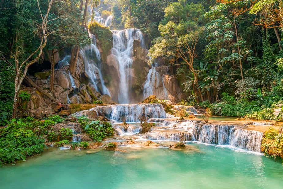 De Kuang Si waterval is een van de parels van Azië. Hier valt het water in diverse niveaus naar beneden. In het regenwoud. Je kunt deze watervallen eenvoudig kunt bezoeken.