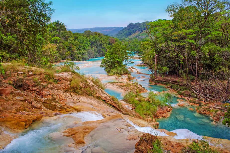 Het beroemde Agua Azul is een reeks van watervallen en natuurlijke zwembaden. Die idyllisch in het regenwoud liggen. Je kunt Agua Azul eenvoudig bezoeken en lekker relaxen in het water. Waarbij je geniet van de omgeving.