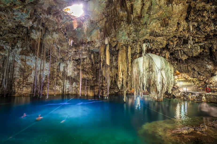 Cenote Xkekén is een van de mooiste cenotes bij Valladolid in Mexico. In tegenstelling tot veel andere cenotes ligt deze vrijwel volledig in een grot, waardoor de sfeer hier donkerder en mysterieuzer is. Zodra je via een trap naar beneden loopt, kom je in een grote ondergrondse ruimte met indrukwekkende stalactieten die aan het plafond hangen. Dit zijn de beste tips om een bezoek te brengen aan Cenote Xkekén.