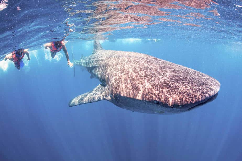 Houd minimaal 1 m afstand van de zijkant van de walvishaai en minstens 3 m afstand van de staart, want die ze kunnen onverwacht bewegen!