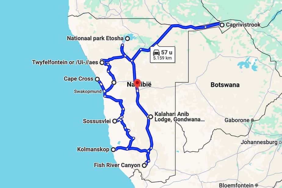 Wil jij een soortgelijke Road Trip door Namibië maken? Onderstaande reisroute geldt als een voorbeeldreis, met name om de rijkdom en diversiteit van het land te laten zien. Je kunt natuurlijk een kortere reis maken. Onderweg zijn er talloze verborgen parels te ontdekken, dus neem de tijd en geniet van de vrijheid van een self-drive avontuur. Maar, je moet de self-drive wel goed voorbereiden. Aangezien het een lange reis is, heb ik iets meer ruimte aangehouden tussen de dagen.