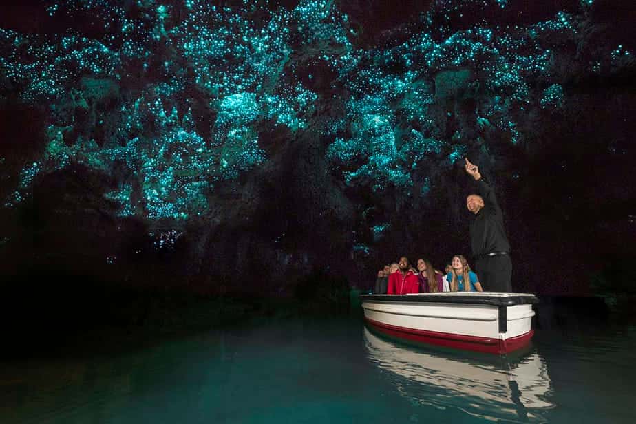 Met een gids ga je op pad in een bootje. Het licht gaat vanzelf uit, waarna je pas het magische van Waitomo ziet. Overal flikkeren piepkleine lampjes. Van dieren welteverstaan. Je zult verbaasd zijn over dit natuurschoon.