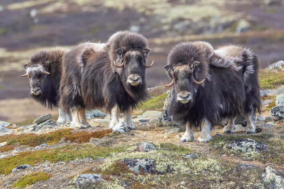 Dovrefjell Park is de beste plek in Noorwegen om muskusossen in het wild te zien. Deze imposante dieren, die honderden kilo’s kunnen wegen, zijn vaak te vinden op het bergplateau, in lager gelegen bossen of zelfs langs de snelweg E6. Let wel op: houd altijd voldoende afstand, want muskusossen kunnen snel rennen en zichzelf fel verdedigen met hun krachtige hoorns.