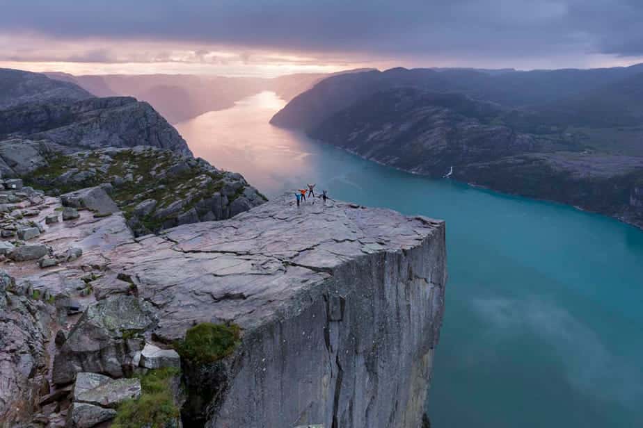 Boven het Lysefjord torent een 605 meter hoge klif. Maak kennis met de Preikestolen, in het Nederlands De Preekstoel. De bovenkant van dit opmerkelijke plateau in de fjorden is 25 meter in het vierkant. Het is nagenoeg vlak, zodat je er kunt lopen. Dit is een bijzondere plek met een weergaloos uitzicht. Wat zeker bij zonsopgang het geval is. Ik raad aan deze wandeling op je reisroute door de Noorse Fjorden te ztten.
