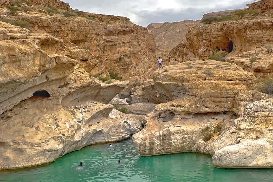 Al kan een wadi ook ontstaan door regenwater. Het water slijt door de jaren heen geulen en poelen uit in de rotsen. Je kunt in bijna alle wadi's in Oman goed zwemmen, relaxen en bijvoorbeeld wat eten en drinken.