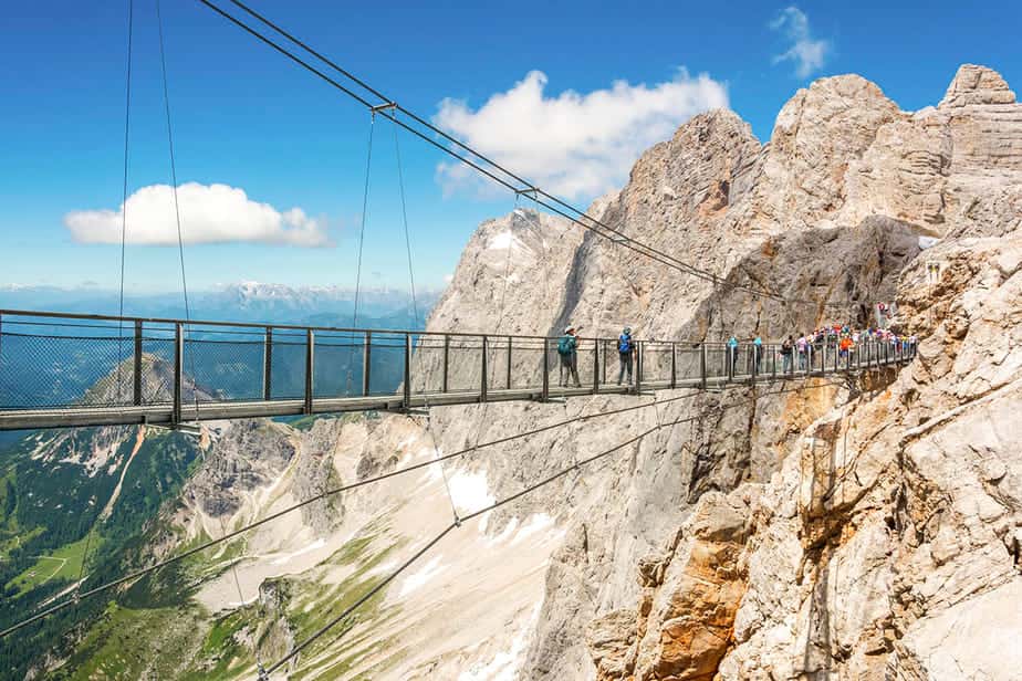 Deze brug is slechts zo’n 100 meter lang. Maar hij hangt wel op een bijzondere plek. De Dachstein Skywalk hangt maar liefst 366 meter boven de ijsmassa.