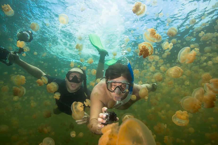 Het kwallenmeer in Palau is wereldberoemd. Je kunt hier zwemmen met tientallen ongevaarlijke kwallen. Het meer was even afgesloten, maar is sinds 2019 weer open.