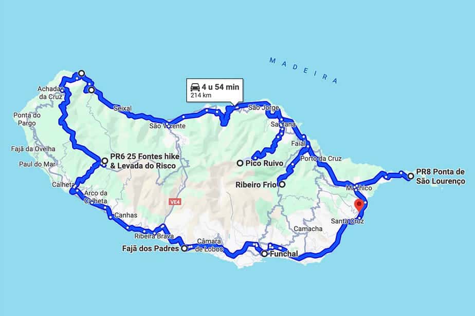Als vertrekpunt voor deze vakantie is de luchthaven van Madeira in Santa Cruz aangehouden. De start en het eindpunt van deze rondreis liggen daar. De reden is simpel: waarschijnlijk haal je je huurauto bij het vliegveld op. Deze Road Trip in Portugal is goed te rijden in 7 dagen, waarbij je niet te lang in de auto hoeft te zitten. Hierdoor kun je lekker veel doen onderweg. Als je liever meer uitstapjes doet, kan dat ook. Ook deze noem ik in dit artikel.