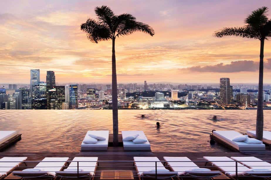 Het Marina Bay Sands in Singapore is een indrukwekkend gebouw in de vorm van een schip. Het unieke zwembad op 340 meter hoogte is onovertroffen. Net als het uitzicht.