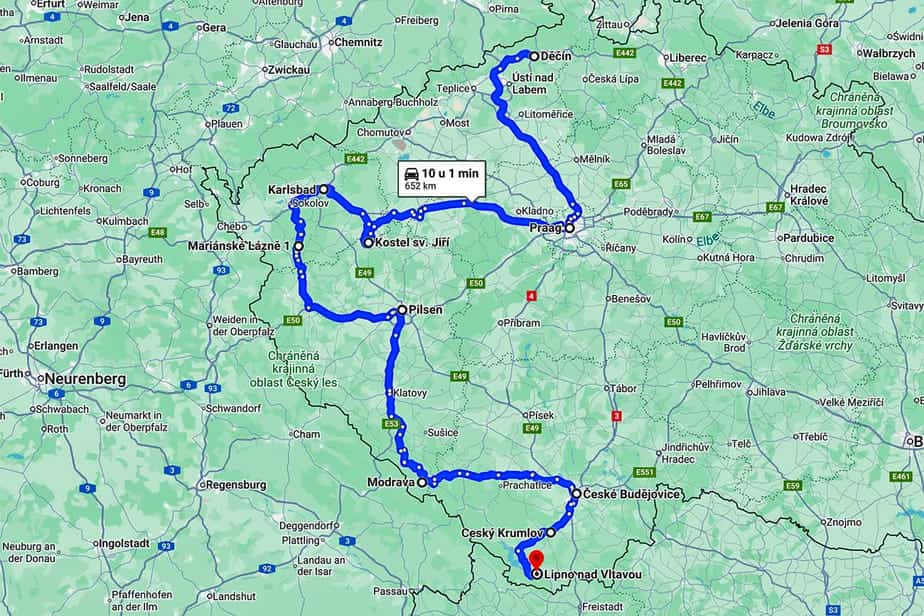 Als vertrekpunt is het beroemde Boheems Zwitserland National Park aangehouden. Dit natuurgebied ligt net over de grens bij Duitsland en het dichtst bij Nederland. Op de reis van Noord- naar Zuid-Tsjechië staan meerdere natuurgebieden, maar ook steden en bijzondere dorpen. De trip met de auto is goed te doen in 12 dagen, zodat je niet te lang in de auto zit. De benzineprijs in Tsjechië is veel lager dan bij ons, dus je kunt goedkoop tanken. Er zijn genoeg tankstations onderweg, bij allemaal kun je met kaart betalen.