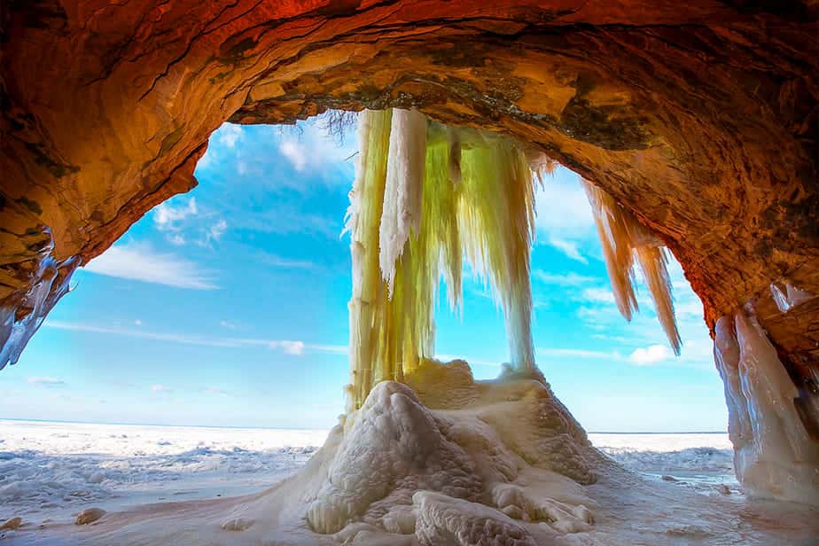 Eigenlijk is dit de mooiste attractie van de Apostle Islands. Al is het lastig te plannen wanneer dit precies op haar hoogtepunt is. Zeker voor buitenlandse toeristen. Maar zodra het gaat vriezen in de winter veranderen talloze grotten in wonderlijke ‘Ice Caves’, oftewel ijsgrotten.