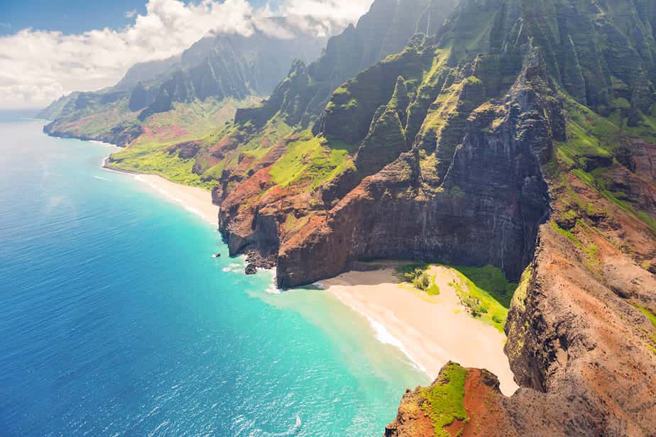 Kauai is volgens velen het mooiste eiland. Het hoogste punt is Kawaikini met 1.598 meter. De meest bekende plek is de Na Pali Coast in het noordwesten van het eiland. Deze kust is wereldberoemd geworden door talloze films en series, zoals Pirates of the Caribbean: On Stranger Tides en Jurassic Park. Ook Lilo & Stitch speelt zich hier af.