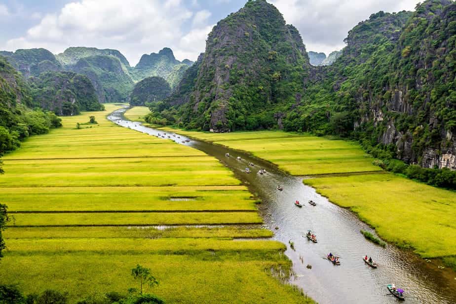 De provincie Ninh Binh in het noorden van Vietnam is beroemd om zijn kalksteenrotsen, rivieren en rijstvelden. Een paar van de bezienswaardigheden zijn Tam Coc en Trang An. Je kunt hier een intrigerende boottocht maken, maar ook goed hiken en grotten ontdekken. Hier ontdek je wat te doen in Ninh Binh en hoeveel dagen je nodig hebt om de regio te bezoeken.